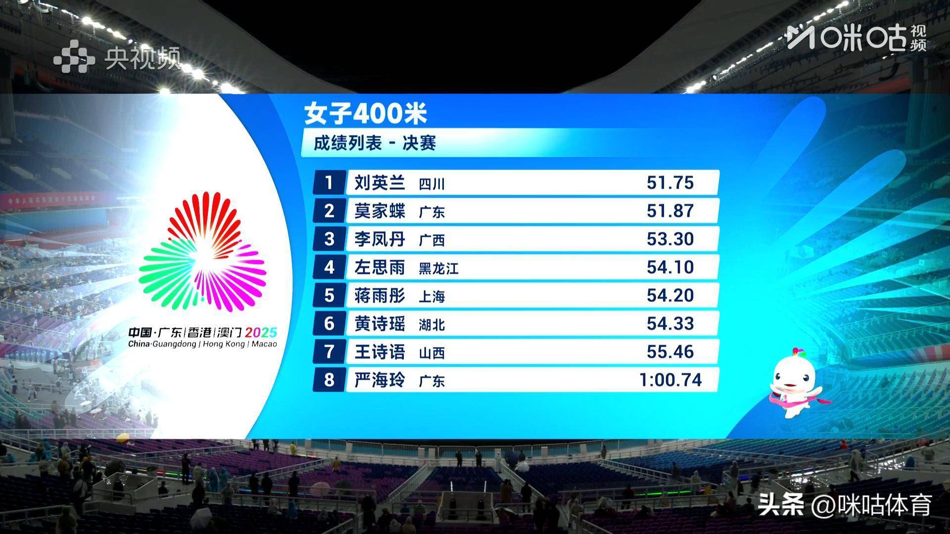 11 月 18 日,全运会女子 400 米决赛演出巅峰对决,最终四川队选手刘英兰以 51 秒 75 的优异收成强势夺冠,广东队莫家蝶斩获银牌,广西队李凤丹紧随后来拿下铜牌。